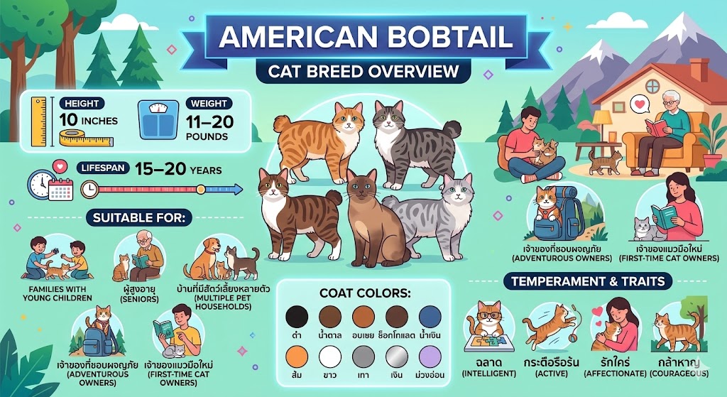 แมวอเมริกันบ็อบเทลเป็นสายพันธุ์ที่ได้รับความนิยมอย่างมาก ด้วยหางสั้นที่เป็นเอกลักษณ์ แม้ว่าพวกมันจะเป็นที่รู้จักกันดีในเรื่องหางสั้น แต่พวกมันก็ได้รับความนิยมเนื่องจากนิสัยขี้เล่นและน่ารักด้วยเช่นกัน ผู้ที่ชื่นชอบแมวอเมริกันบ็อบเทลบางคนเรียกพวกมันว่าโกลเด้นรีทรีฟเวอร์ในหมู่แมว เพราะพวกมันมีนิสัยเหมือนลูกสุนัขและอ่อนโยน พวกมันเป็นที่รักเพราะคุณสมบัติที่ดีเยี่ยมมากมาย ซึ่งเราจะกล่าวถึงในรายละเอียดเพิ่มเติมด้านล่าง