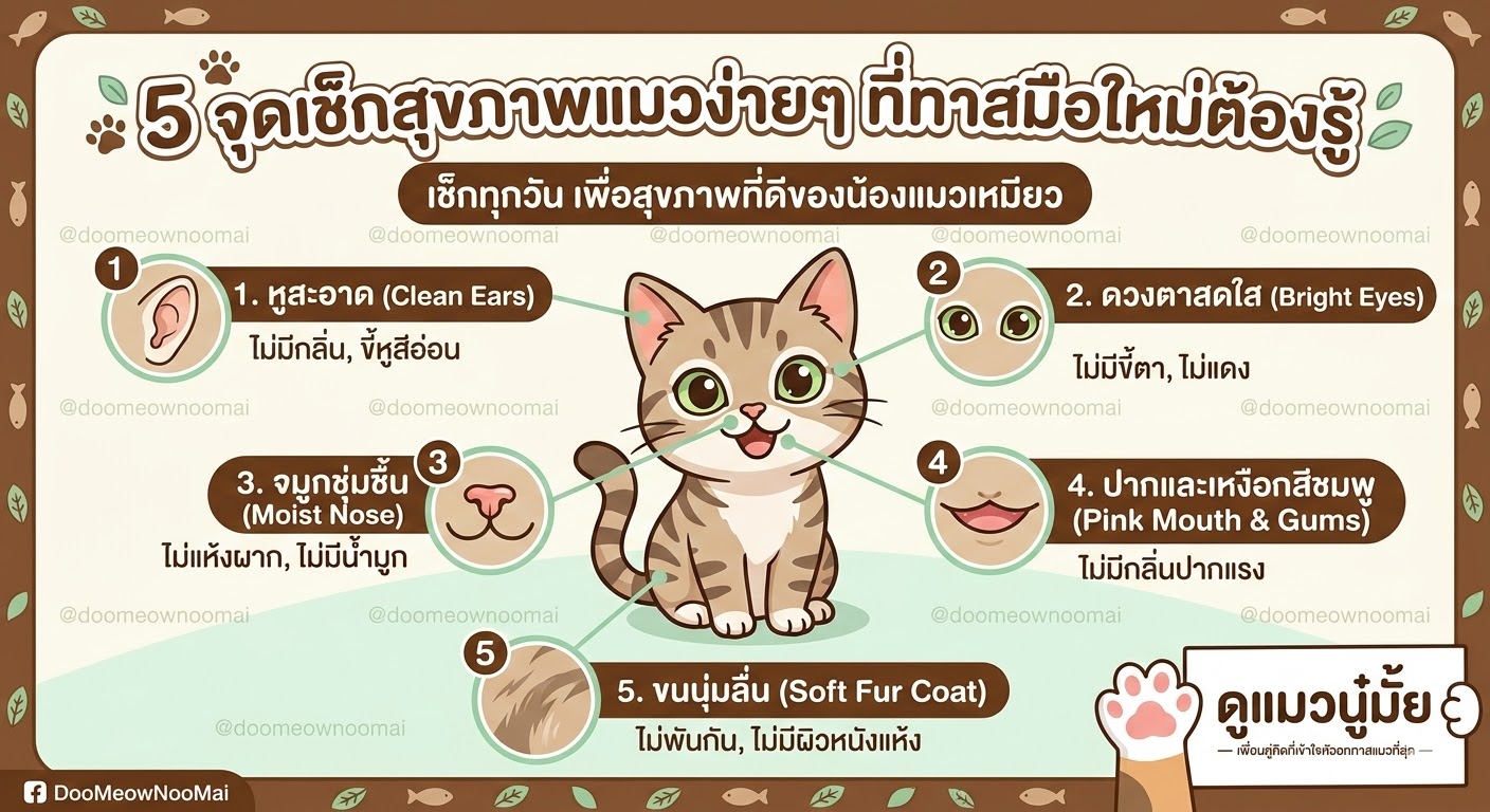 5 จุดเช็กสุขภาพแมวง่ายๆ ที่ทาสมือใหม่ต้องรู้… อย่าปล่อยให้ลูกป่วยโดยไม่รู้ตัวนะเหมียว!